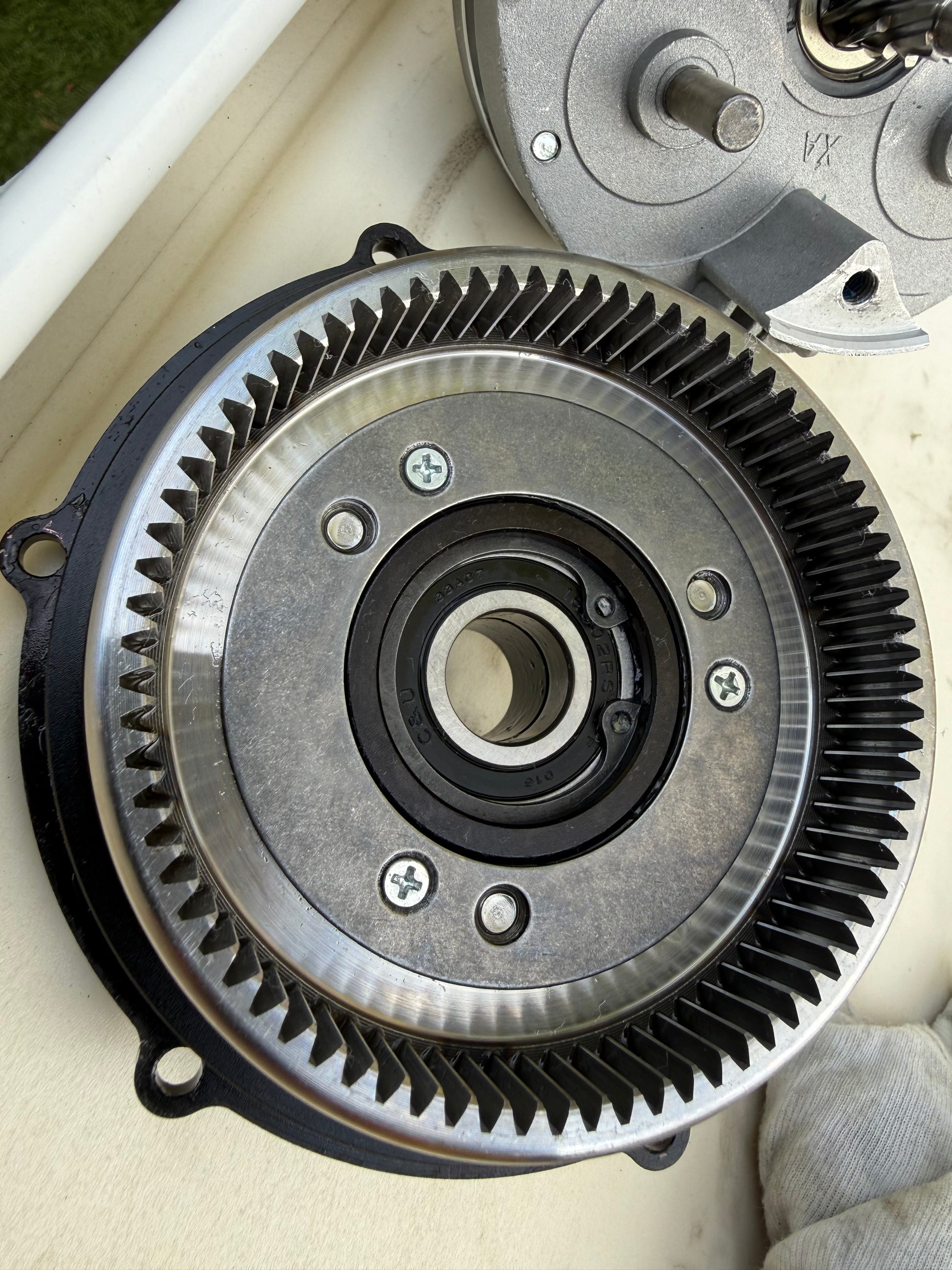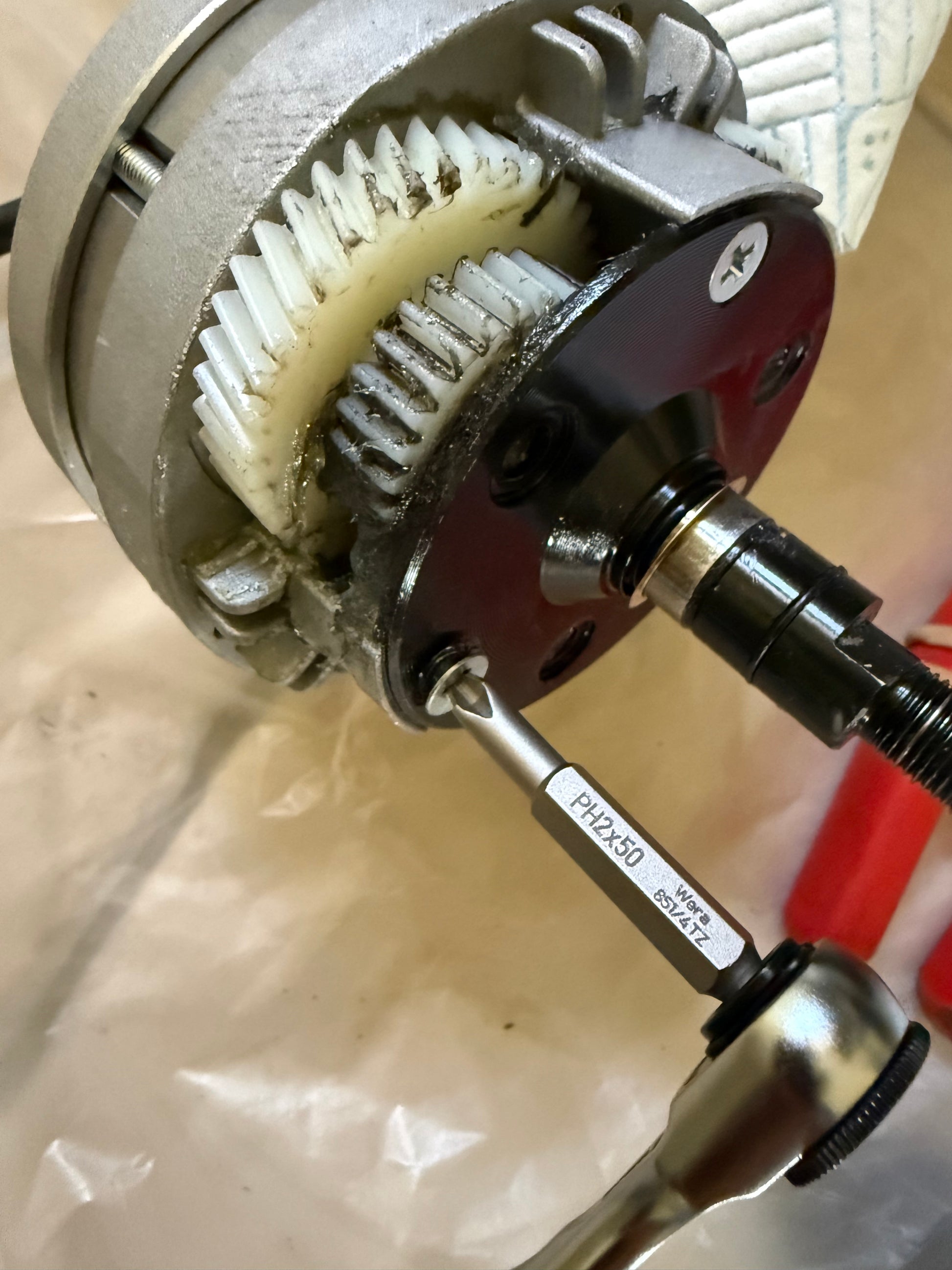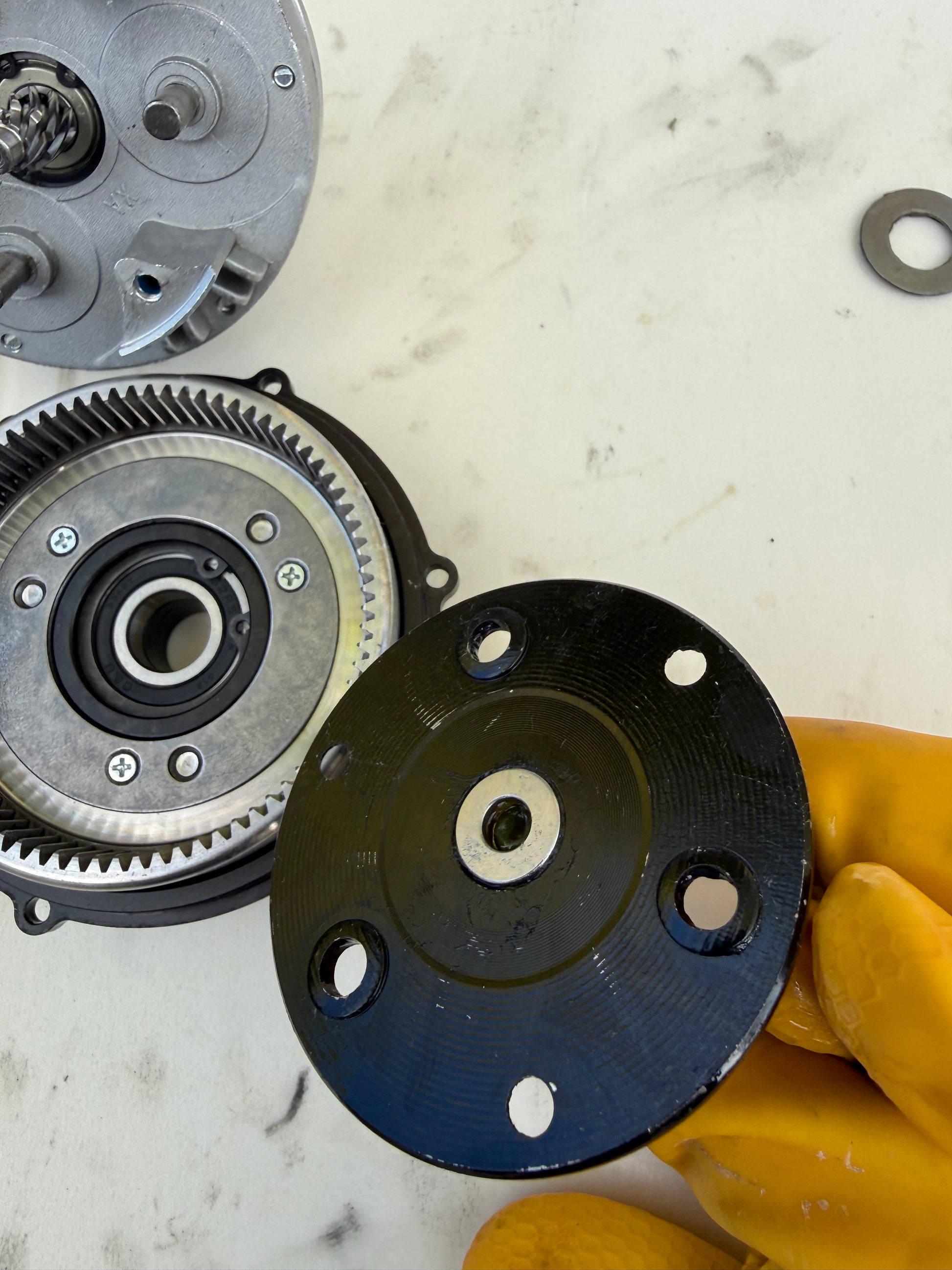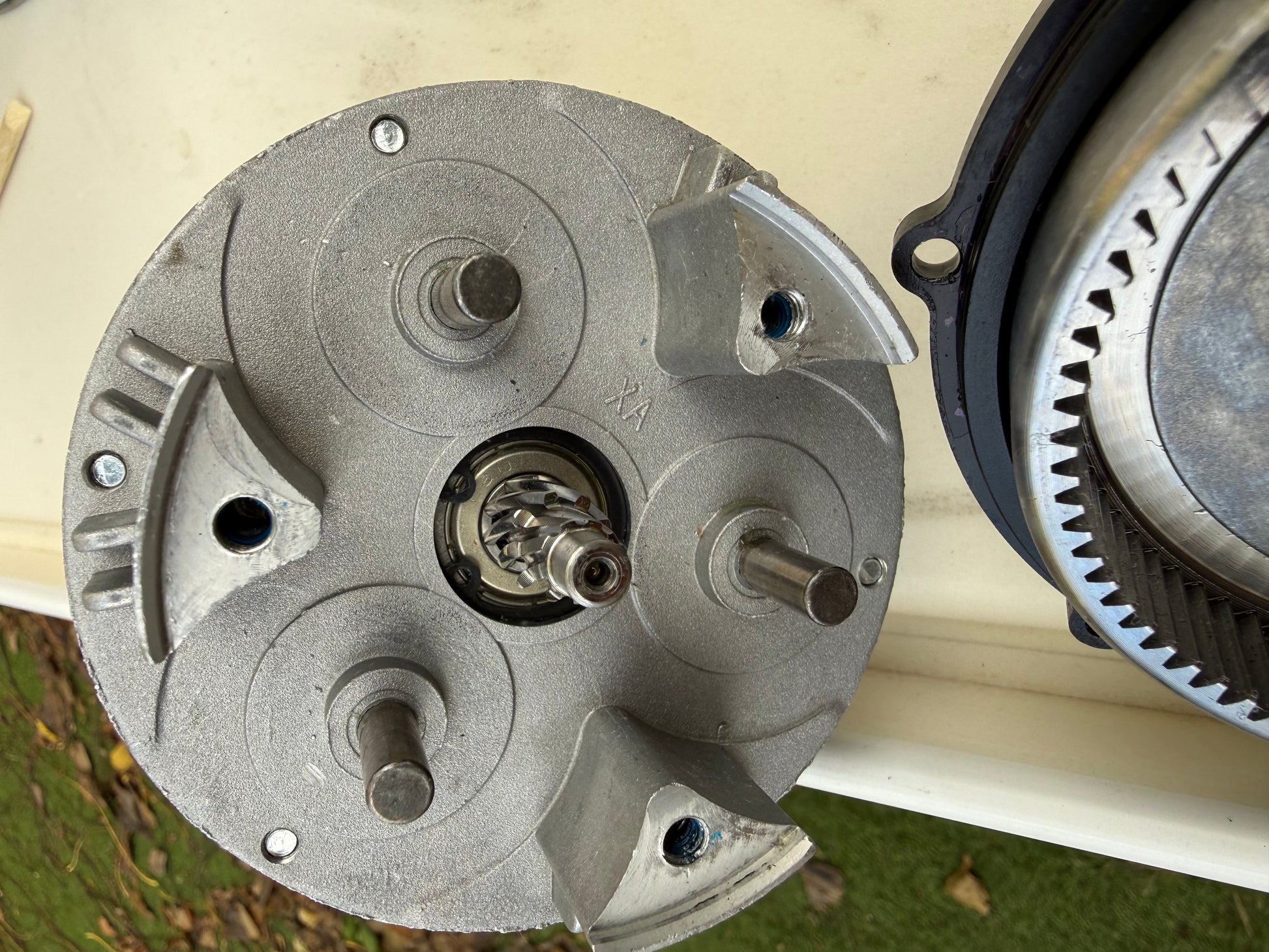 Each blue line marks a specific tooth on each planet gear that was aligned to a reference position when the motor was originally assembled.